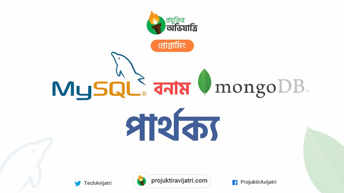 | ডেটা স্টোর | MySQL এ ইনডিভিজুয়াল ডেটা একটি টেবিলে রো (row) হিসেবে স্টোর করা হয়। | MongoDB তে “Documents” হিসেবে ইনডিভিজুয়াল ডেটা স্টোর করা যায়। |