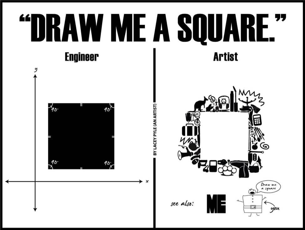 আমি আমার ছাত্রদের কে একটা উদাহরণ দেই, “একজন শিল্পী অংকন করেন, একজন প্রকৌশলীও অংকন করেন, তাহলে দুইজনের পার্থক্য কোথায়?